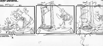 Here are story sketches for LOOK OUT BELOW starring George and Junior, a cartoon I Directed and wrote. Copyright Hanna-Barbera Productions.